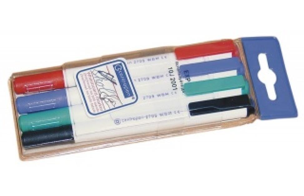 Designed for writing and drawing on special white enamel boards. Ink is dry wipe and light fast. It is filled with delible ink meeting the health requirements. The product has the CE certificate of medical fitness for children. Width of track is 2.5 mm. New markers of modern design have fibre tips resistant to pressing. High-capacity cartridge, high resistance to drying. All materials used in production fulfil the health requirements.