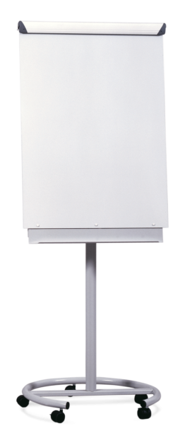 Mobile board on wheels with a brake and height-adjustable pylon, with option of writing on paper block sheets with arbitrary spacing of apertures for hanging, or just on magnetic board surface. Using additional hangers and magnets you can attach to the flipchart more paper sheets, drawings, etc. Flipchart has a more sophisticated upper bar for attachment of paper block. The flipchart contains added pivoted arms. We are able to also deliver full flipchart equipment (paper blocks, felt pens, colour blades, cleaners, magnets, telescopic or laser spotters).