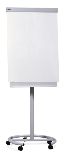 Mobile board on wheels with brake and height-adjustable pylon, with option of writing on paper block sheets with arbitrary spacing of apertures for hanging, or just on magnetic board surface. Using additional hangers and magnets you can attach to the flipchart more paper sheets, drawings, etc. Added pivoted arms are component of the flipchart. We are able to also deliver full flipchart equipment (paper blocks, felt pens, colour blades, cleaners, magnets, telescopic or laser spotters.