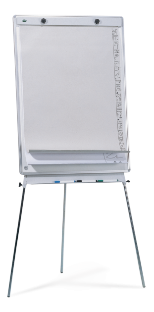 Robust portable board installed in aluminium frame with height-adjustable pylon, with option of writing on paper block sheets, or just on magnetic board surface. Using additional hangers and magnets you can attach to the flipchart more paper sheets, drawings, etc. We are able to also deliver full flipchart equipment (paper blocks, felt pens, added pivoted arms, telescopic or laser spotters).