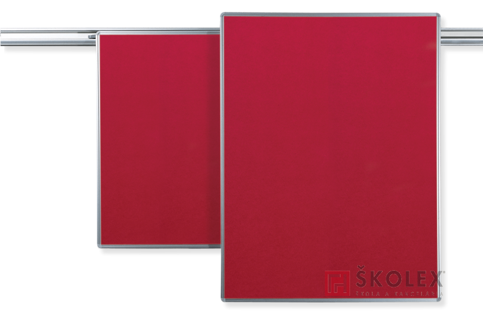 Light sticking board for easy movement along the rail, installed in aluminum frame, finished by white comaxite colour with grey rounded plastic corners. The decorative layer of the board is made of coloured felt (grey, beige, purple and white colour). The board can be supplied with push pins.