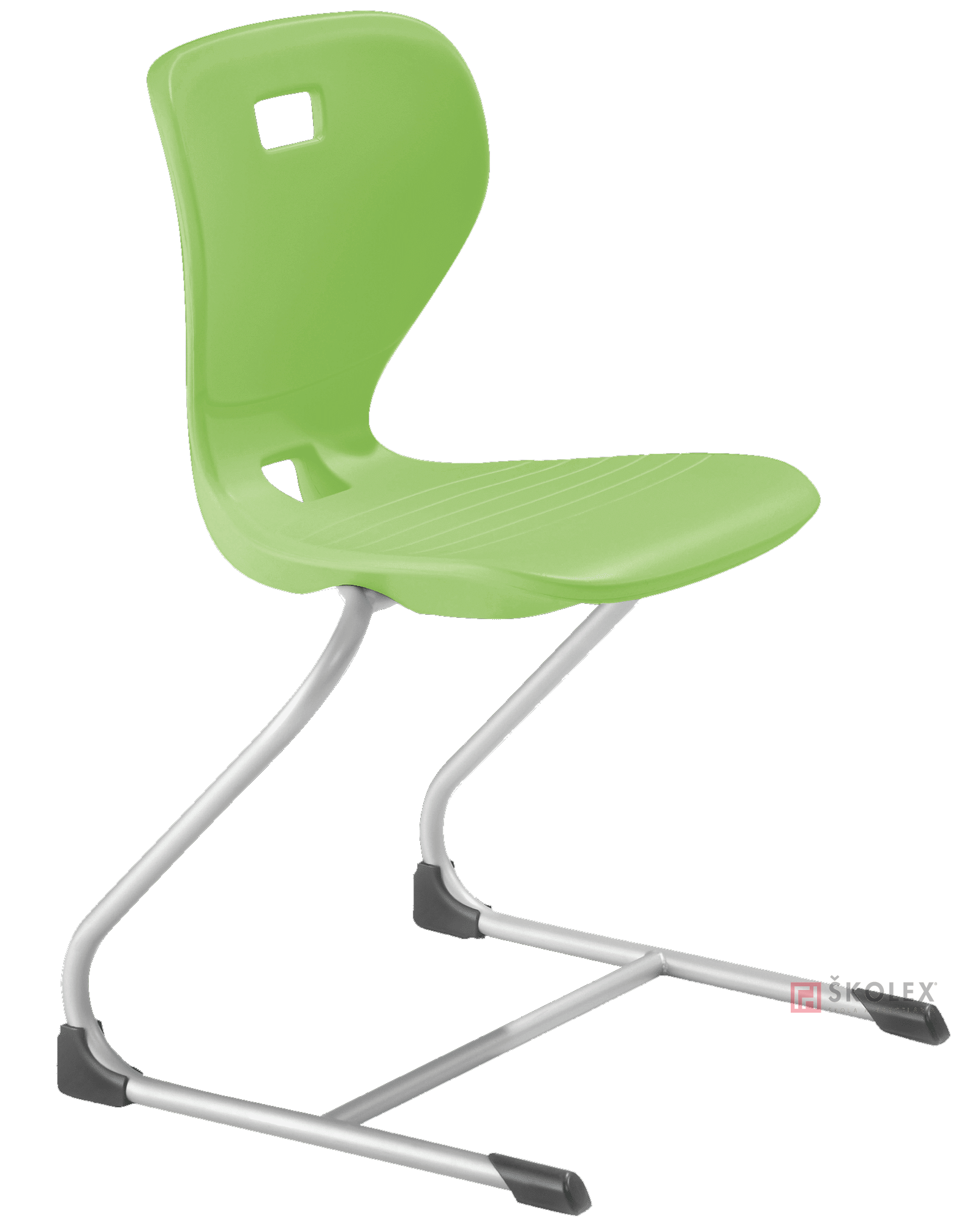 Moderná, ergonomicky tvarovaná stolička. Vysoký komfort sedenia. Sedák z farebného špeciálneho plastu z „ľahkých bubliniek“ zabezpečuje optimálny prietok krvi. Ľahké čistenie. Sedáky sú extrémne robustné a odolné. Pomocou otvoru v plastovej časti sa stoličky ľahko prenášajú. Kovová kostra stoličky konzolového tvaru je pevná a pružná. Plastové klzáky v tmavošedej farbe nepoškodzujú podlahu. Možnosť nalepenia plstených podložiek na mäkké podlahy. Farba kovovej konštrukcie RAL 9006 – strieborná, farba plastov - modrá, červená, limetkovozelená, zelená, oranžová, svetlošedá, tmavošedá. Veľkosť č. 3, 4, 5, 6.