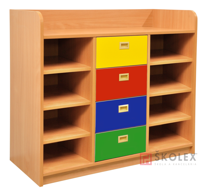 Laminovaná drevotriesková doska hrúbky 18mm, 2mm ABS hrana. Dvierka a čelá zásuviek je možné objednávať aj vo farebných prevedeniach LDTD, korpus len v základných drevodekóroch (buk, dub Sonoma, javor, jelša, čerešňa), antracitovej, čiernej, šedej a bielej farbe LDTD. Madlá sú kvôli bezpečnosti detí zapustené, farba strieborná, bez možnosti farebnej úpravy. Vrchná časť skrinky je riešená ako priestor pre odkladanie knžiek a hračiek. Chrbát skrinky tvorí sololit alebo v prípade ustavenia do priestoru pohľadová LDT doska vo farbe korpusu. Pri ustavení do priestoru umožňujú skrinky optické rozdelenie miestnosti. Za príplatok je možné objednať kolieska ku skrinke.
