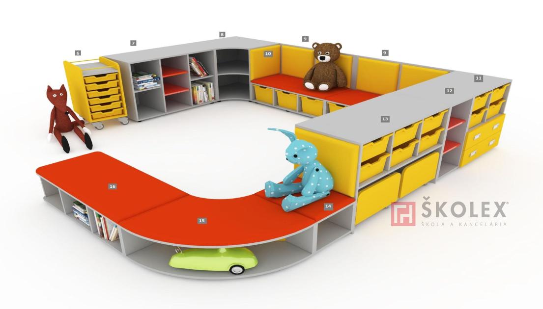Modelový rad nábytku pre materské školy NELI. Zostava č.2 je ukážkou vytvorenia moderného hracieho priestoru pre deti, vyznačuje sa farebnosťou a variabilitou v usporiadaní nábytku. Možnosť výberu vlastnej farebnej kombi... (more)