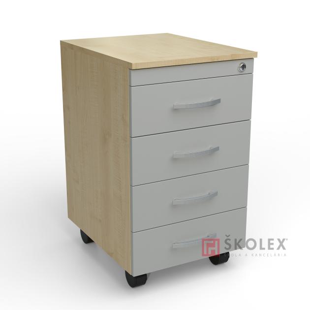 Kontajnery z kolekcie Dominika sú vyrobené z laminovanej drevotrieskovej dosky hr.18mm (výber zo vzorkovníka Farba korpusu a dvierok), hranené 2mm ABS na exponovaných častiach. Štandardné vyhotovenie skriniek je bez zámku, bez možnosti farebného vyhotovenia čela zásuviek. Za príplatok možnosť voľby zámku, farebných čiel zásuviek (Príplatková farba dvierok).