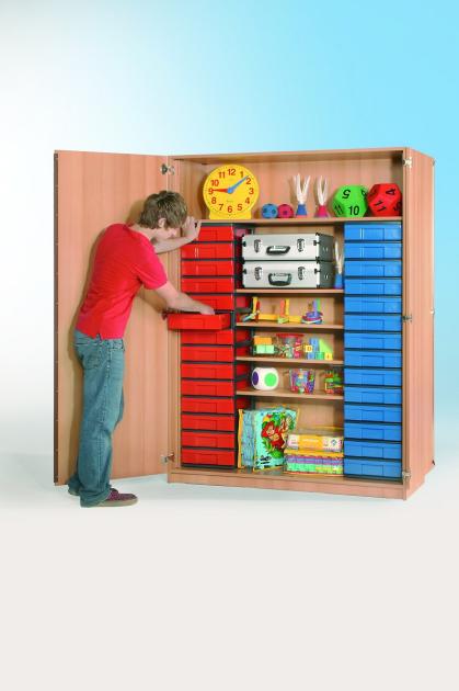 Praktické uzamykateľné skrine do tried a kabinetov na prehľadné odkladanie učebných pomôcok do políc a plastových boxov (more)