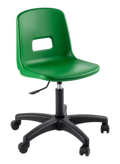 Stolička s celoplastovým sedákom rôznych farieb, výškovo nastaviteľná pomocou plynového piestu, päťramenný plastový kríž s kolieskami (more)