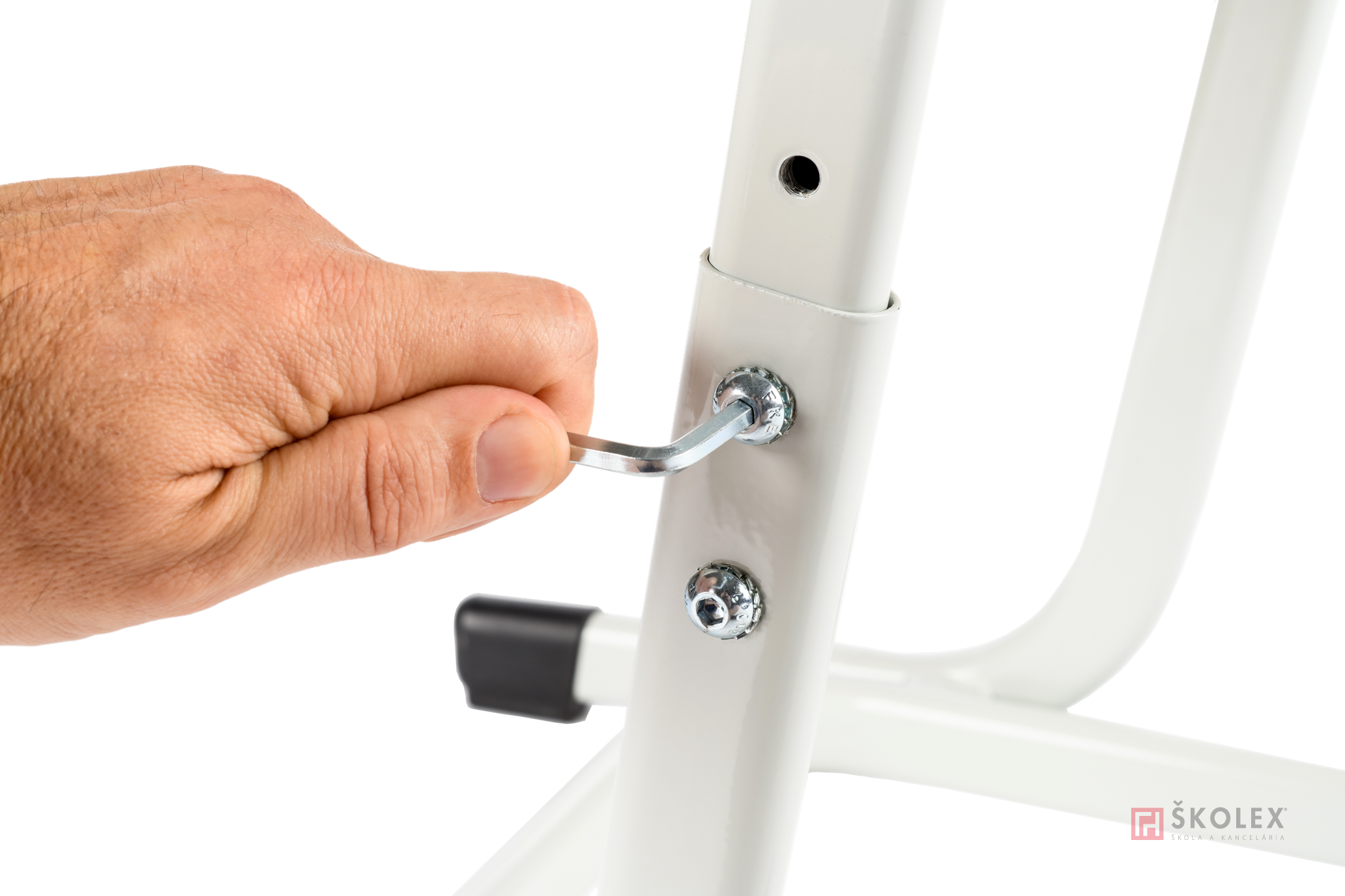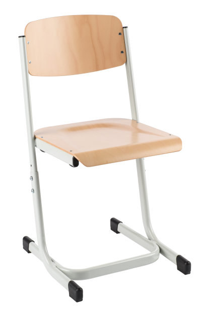 Metal construction made of tubular profile 38 x 20 mm with powder coating (assortment of 11 comaxit colours). Chair feet are ended by plastic end pieces. The seat and backrest are made of 7-coat full beech moulded plywood. The edges are protected by metal profiles.The seat and the backrest are attached to the construction by steel rivets with diameter of 5mm. Chairs are stackable. It is easily adjustable by using of inbus key.