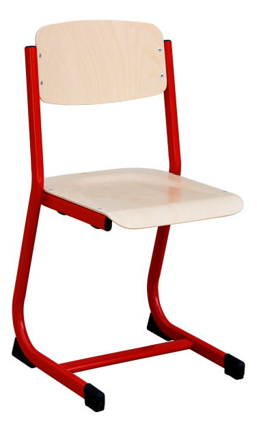 Metal construction made of pipe profile 38 x 20mm with powder coating (assortment of 11 comaxit colours. Chair feet are ended by plastic end pieces which absorb noise and do not cause damage to the floor. The seat and backrest are made of 7-coat full beech moulded plywood treated by high-quality polyurethane varnish. The seat and the backrest are attached to the construction by steel rivets with diameter of 5mm. Chairs are stackable.