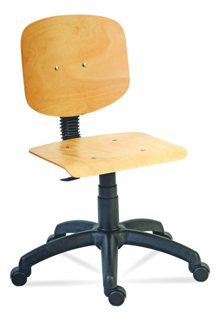 Dielenská stolička s bukovo preglejkovým sedadlom a operadlom, plastová báza s kolieskami (klzákmi), nastaviteľná hĺbka sedenia, výška operadla, pevný uhol operadla, nastaviteľnosť plynovým piestom. Nosnosť 120 kg, záruka 24 mesiacov.